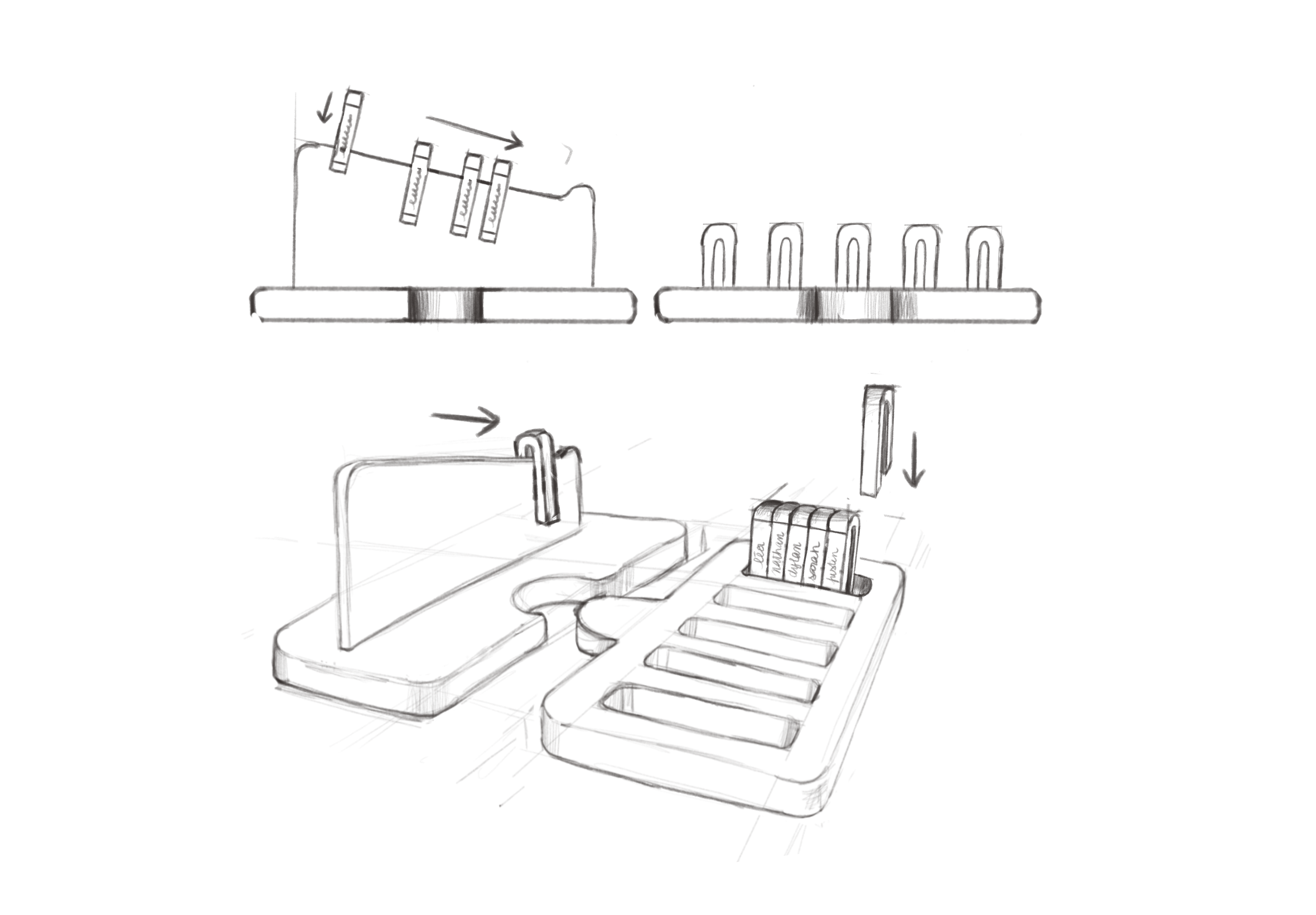 Pour le premier axe du kit, les solutions ont été inspirées par le travail des enseignants rencontrés. Des systèmes de gestion de classe tel que la file d’attente, le tableau des rôles ou le collier du tutorat, ont été adaptés pour favoriser l'autonomie des élèves et soulager la charge mentale des enseignants. En formalisant ces dispositifs, l'objectif était de les rendre accessibles à un plus grand nombre.